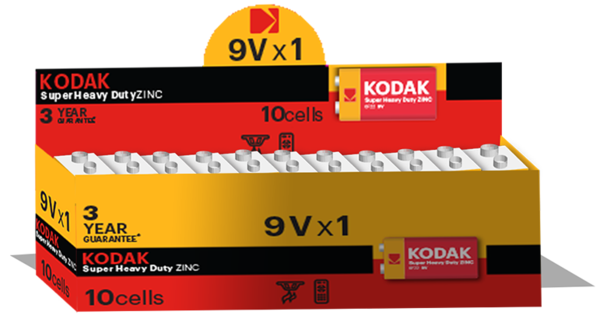Сольова батарейка Kodak – це багатоцільові елементи живлення. Кількість в упаковці 10шт. Напруга 9 В. Типорозмір Крона (6F22).