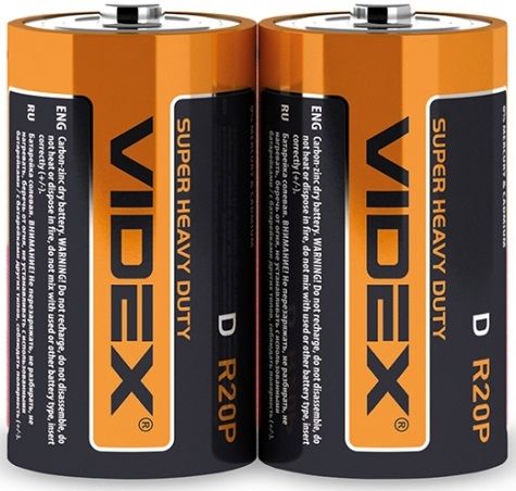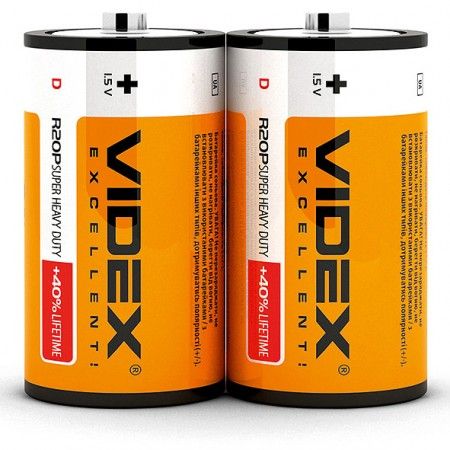 Бренд Videx Кількість в упаковці 10 шт Артикул виробника R2OP/D 2pcs S Типорозмір R20 (D) Тип електроліту Сольова Напруга 1,5 В -
