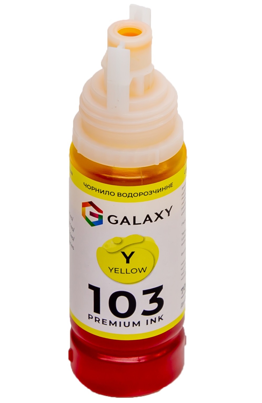 Використовуйте якісне чорнило 103 Epson (Yellow) 70ml - ТМ Galaxy*Дані чорнила є аналогом оригінального чорнила Epson 103 Yellow (C13T00S44A)