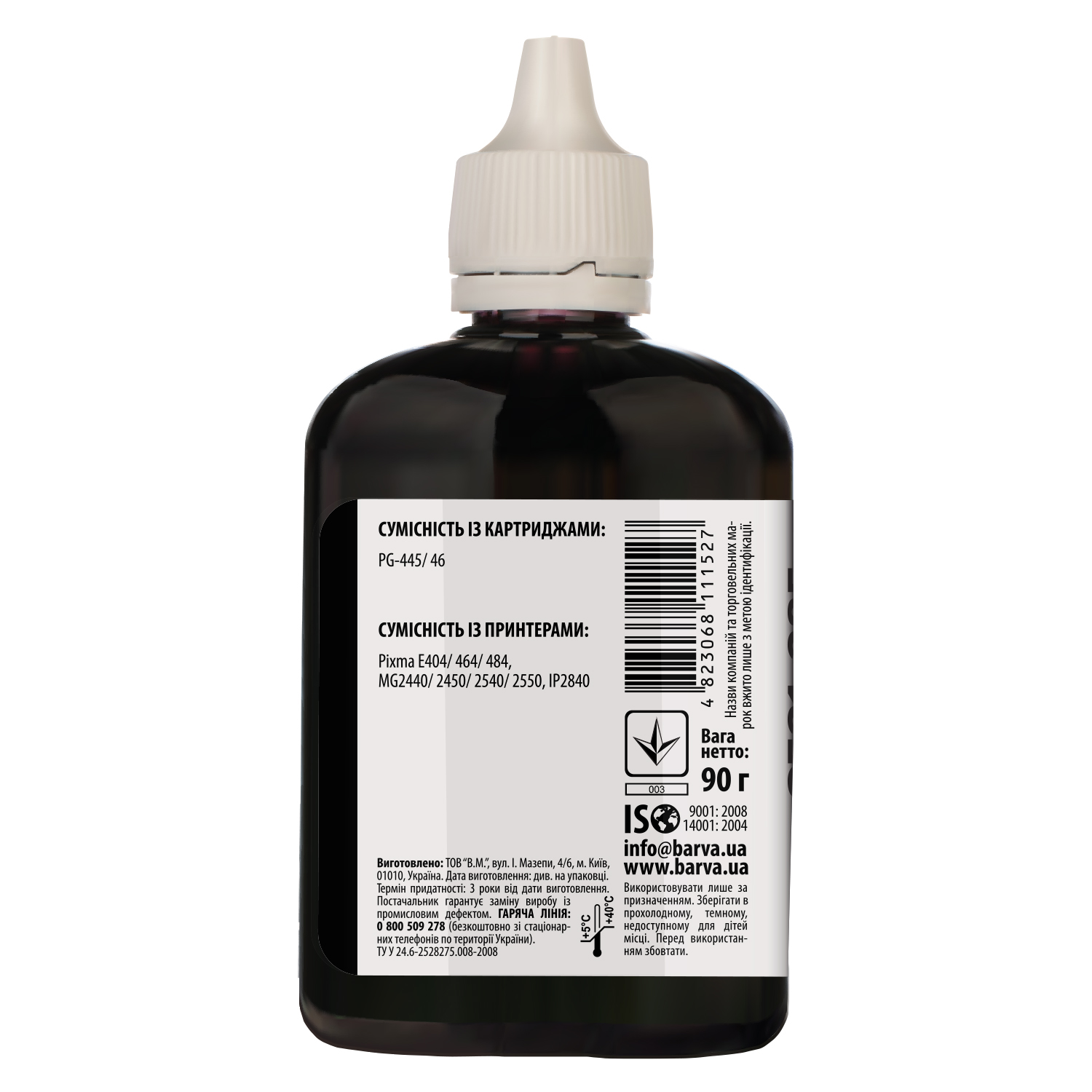 Сумісне чорнило Barva Canon E404/MG2440/IP2840 (Black) 90 ідеально підходить для заправки струменевих картриджів, а також СНПЧ принтерів Canon (Кенон) моделей Pixma: E, IP, IX, MG, MP, MX, Pro, BJ BJC, FAX. Всі чорнила Barva розробляються, тестуються та виробляються в Україні. Забезпечують точну передачу кольору та півтонів на фотографіях під час друку на всіх видах фотопаперу. Також чорнило марки Barva має 100% сумісність з оригінальним чорнилом, високу світлостійкість, швидко сохнуть і не змащуються після друку. Розлите чорнило в зручний флакон, який має насадку-носік, що дозволяє з легкістю заправляти їх у СНПЧ принтерів Canon.