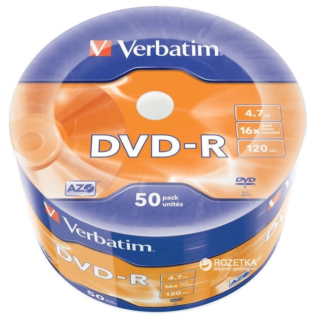 Бренд Verbatim Тип диска З логотипом (branded) Обсяг пам'яті Односторонні 4,7 ГБ (DVD) Мах. швидкість запису х16 Кількість в упаковці 50 шт Артикул виробника 43788 -