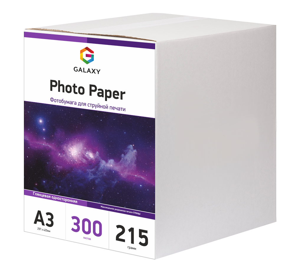 Безперечною перевагою глянцевого фотопаперу Galaxy у порівнянні з іншими виробниками є її ціна, яка значно нижча ніж у всіх конкурентів, при цьому за якістю вона можна порівняти з брендами з дорогого сегменту. Відмінною особливістю глянцевого фотопаперу Galaxy формату A3 є гладка поверхня листа з глянцевим блиском, також вона має високий ступінь білизни і відмінну стійкість до вицвітання фарб, все це підтверджує високу якість даного паперу.