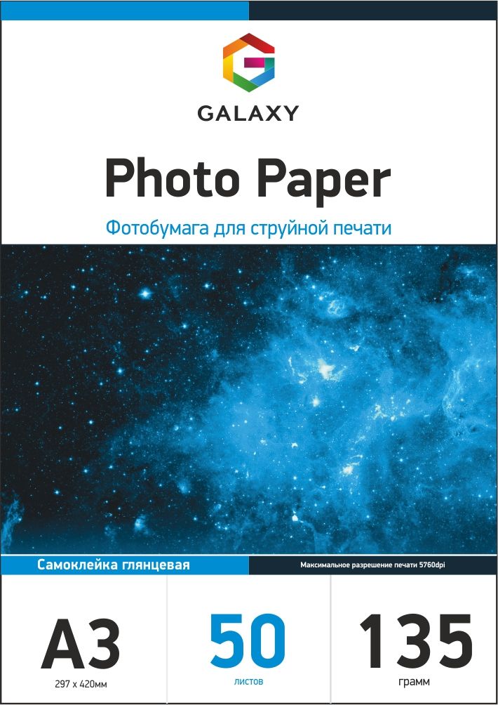 Самоклеючий фотопапір Galaxy A3 (50л) 135г/м2 глянцевий