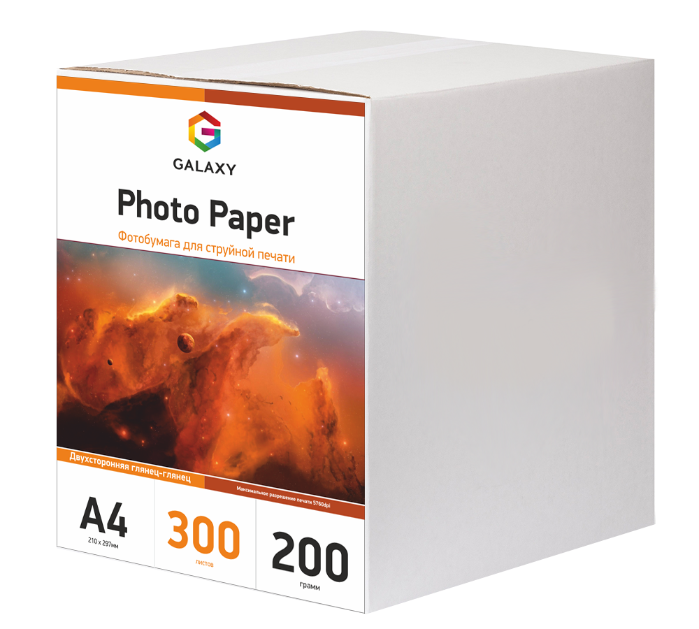 Двосторонній глянсовий фотопапір Galaxy А4 (300л) 200г/м2 має унікальні властивості завдяки яким на обох сторонах аркуша можна надрукувати зображення в реалістичному фото якості. Обидві поверхні аркуша мають гладку глянсову поверхню, друкуючи на яких ви отримаєте зображення найвищої якості з роздільною здатністю до 5760 dpi, а також відмінну кольоропередачу та чіткість зображення. Двосторонній глянсово-глянцевий фотопапір Galaxy відмінно підійде для друку Фотографій, фотокниг, візиток, постерів, різноманітної рекламної продукції та інших цілей.