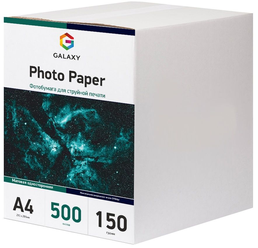 Матовий фотопапір Galaxy А4 (500л) 150г/м2 має невелику щільність що дозволяє використовувати його для всіляких цілей, від друку фотографій у рамку до всіляких репродукцій, фотокниг, рекламної продукції, візиток та інших друкованих матеріалів з максимальною промальовуванням деталей зображення.