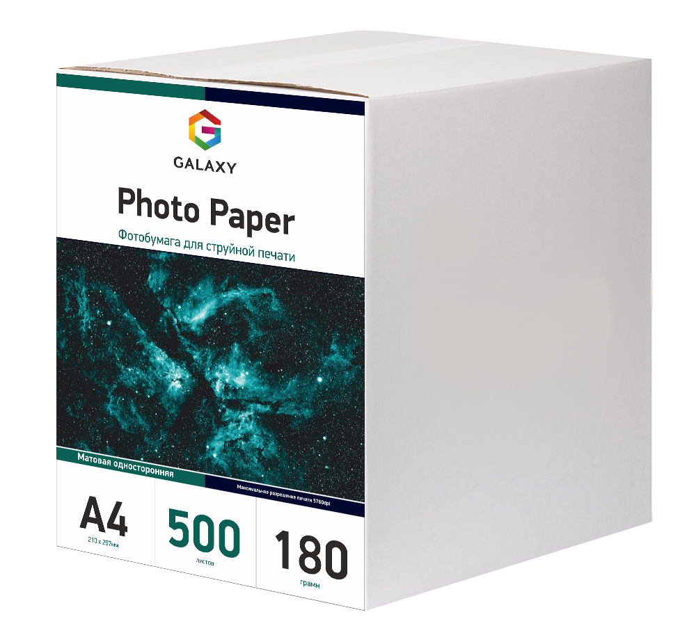 Матовий фотопапір Galaxy А4 (500л) 180г/м2 має невелику щільність що дозволяє використовувати його для всіляких цілей, від друку фотографій у рамку до всіляких репродукцій, фотокниг, рекламної продукції, візиток та інших друкованих матеріалів з максимальною промальовуванням деталей зображення.