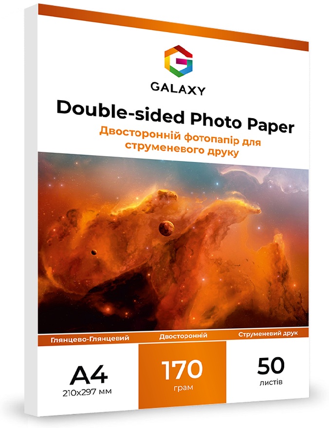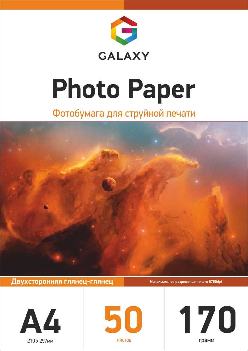 Двосторонній глянсово-глянцевий фотопапір Galaxy відмінно підійде для друку Фотографій, фотокниг, візиток, постерів, різноманітної рекламної продукції та інших цілей.