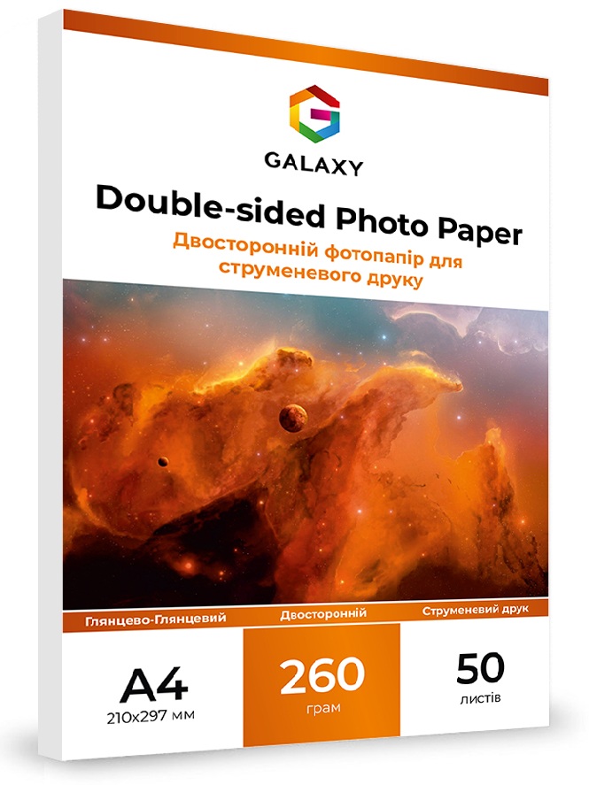 Двосторонній глянсово-глянцевий фотопапір Galaxy відмінно підійде для друку Фотографій, фотокниг, візиток, постерів, різноманітної рекламної продукції та інших цілей.