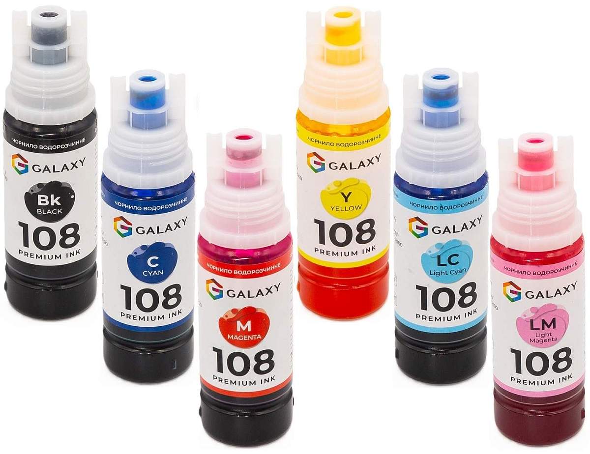 Використовуйте якісне чорнило 108 Epson (B/C/M/Y/LC/LM) 6x70ml - ТМ Galaxy -
