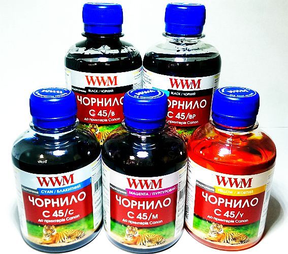 Компанія WWM була заснована в Україні 1993р. За час існування вона зарекомендувала себе як надійного постачальника витратних матеріалів до друкуючих пристроїв Canon. На виробництві налагоджений високий рівень контролю над якістю виробленої продукції. Всі чорнила ТМ WWM (ВВМ) для принтерів Canon мають широку колірну гамму, відбитки фотографій виходять яскравими з насиченими кольорами, швидко сохнуть і не змащуються після друку. Завдяки впровадженню у виробництво нових наукових розробок зображення надовго збереже яскравість фарб.Переваги WWM C45 для принтерів Canon: