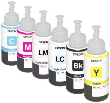 Комплект оригінального чорнила Epson L800/L805/L810/L850/L1800 (B/C/LC/M/LM/Y) 6х70ml призначений для шести кольорової серії принтерів Epson (Епсон) серії L, яку ще називають фабрика друку. Все чорнило Epson у процесі виготовлення проходить багатоступінчасту систему контролю якості, розробляються та тестуються оригінальні чорнила Epson на власних заводах. Оригінальне чорнило марки Epson має найкращі показники по світлостійкості та кольоропередачі, воно швидко сохне і не змащується після друку. Також після отримання відбитка зображення виходить яскравим та контрастним. А найважливішою перевагою цього чорнила є те, що через багато років відбиток збереже свій первозданний вигляд, не вицвіте і не потьмяніє. Розлито оригінальне чорнило Epson у спеціальний флакон, який має насадку-носік, завдяки якому їх дуже зручно заправляти в СНПЧ та картриджі принтерів Epson. На кожній баночці є код.