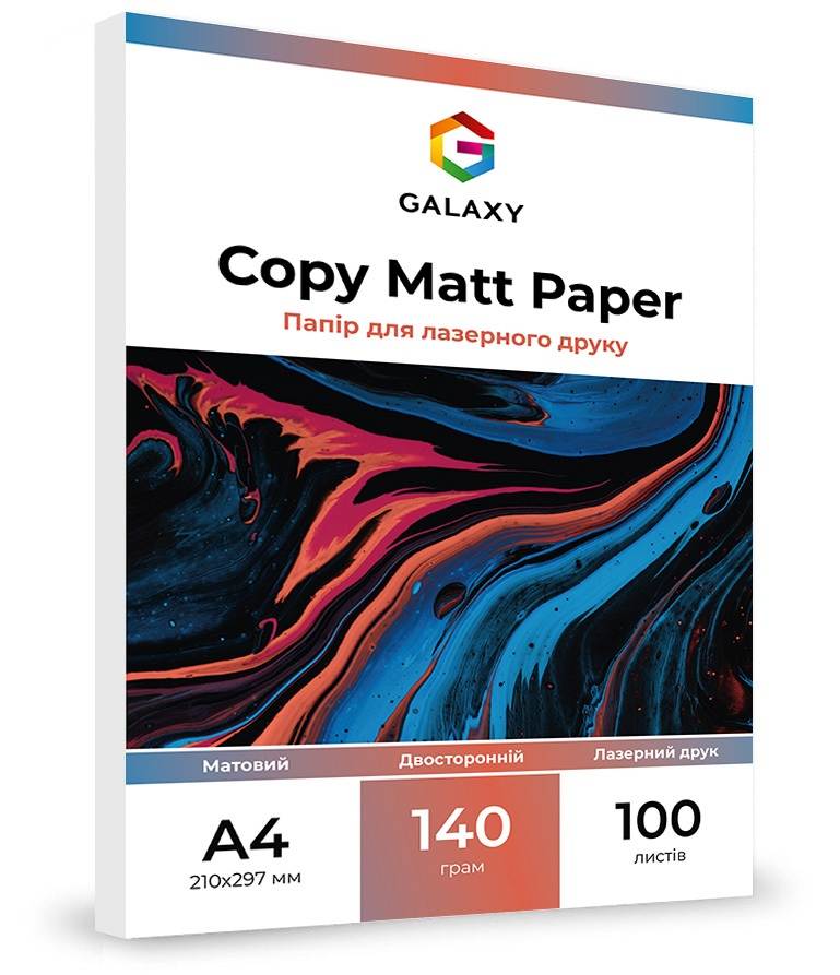 Багатоцільовий офісний папір Galaxy для лазерного друку, із середньою щільністю 140 г/м2 – це високоякісний матеріал, призначений для отримання чітких монохромних або кольорових зображень та тексту.