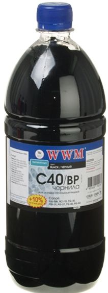 Комплект пігментного чорнила WWM C40/BP CANON (Black) 1000г були спеціально розроблені для 4-х кольорових принтерів та МФУ Canon (Кенон) моделей: Pixma IP, IX, MP, MX, Pro. Характеристики даної серії чорнила WWM повністю відповідають вимогам необхідним для повноцінної роботи фотопринтерів та МФУ наведених вище моделей. При цьому чорнило можна заливати як у картриджі так і в СНПЧ