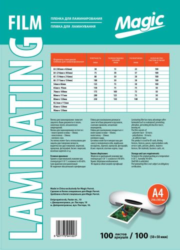Плівка для ламінування Magic A4 (216х303) 100 мікрон (50/50), глянсова (100л)