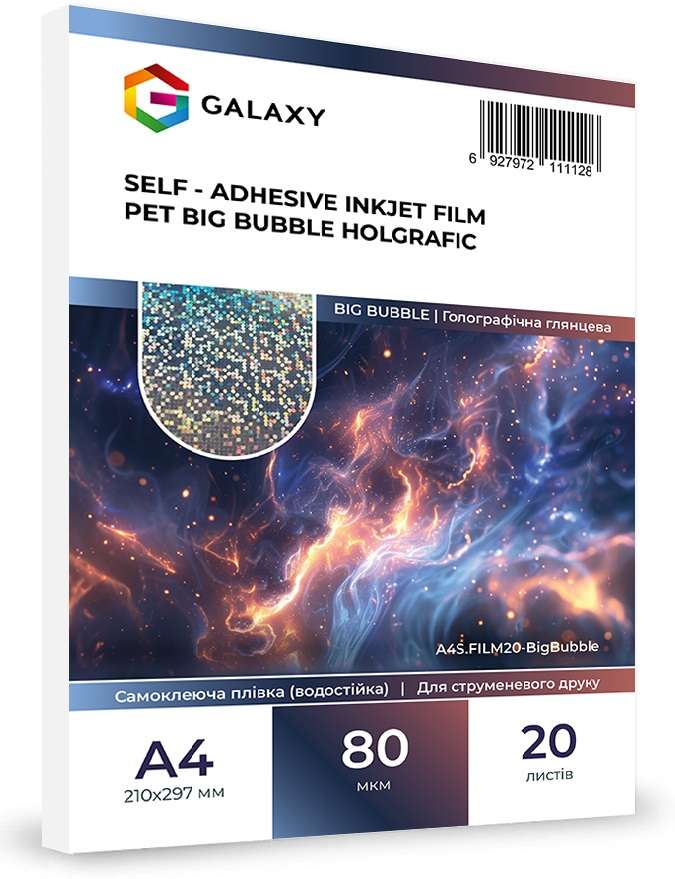 Самоклеюча плівка Galaxy А4 (20л) 80мкм, Струменевий друк, Holographic BIG BUBBLE