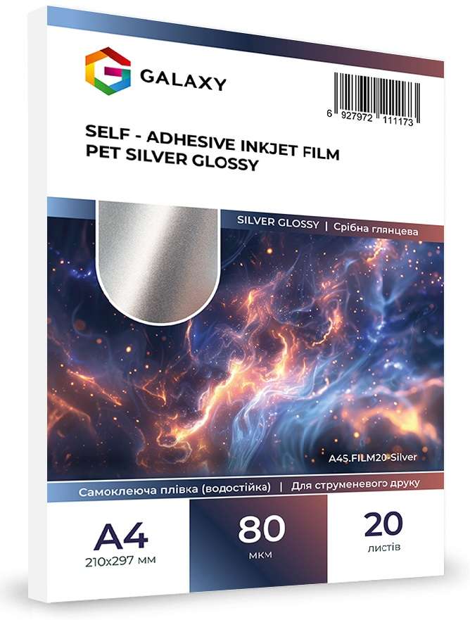 Самоклеюча плівка Galaxy А4 (20л) 80мкм, Струменевий друк, Holographic SILVER Glossy