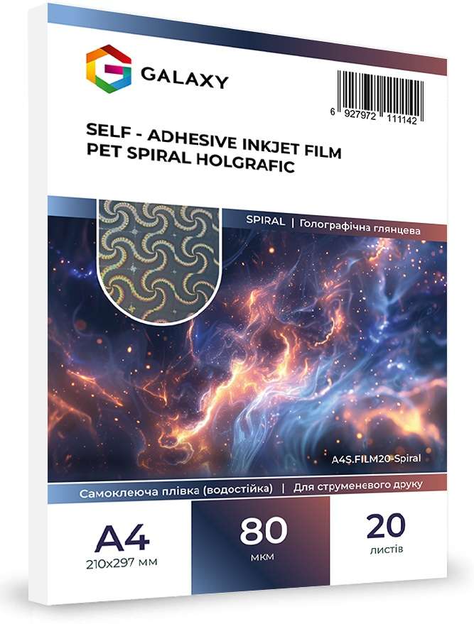 Самоклеюча плівка Galaxy А4 (20л) 80мкм, Струменевий друк, Holographic SPIRAL