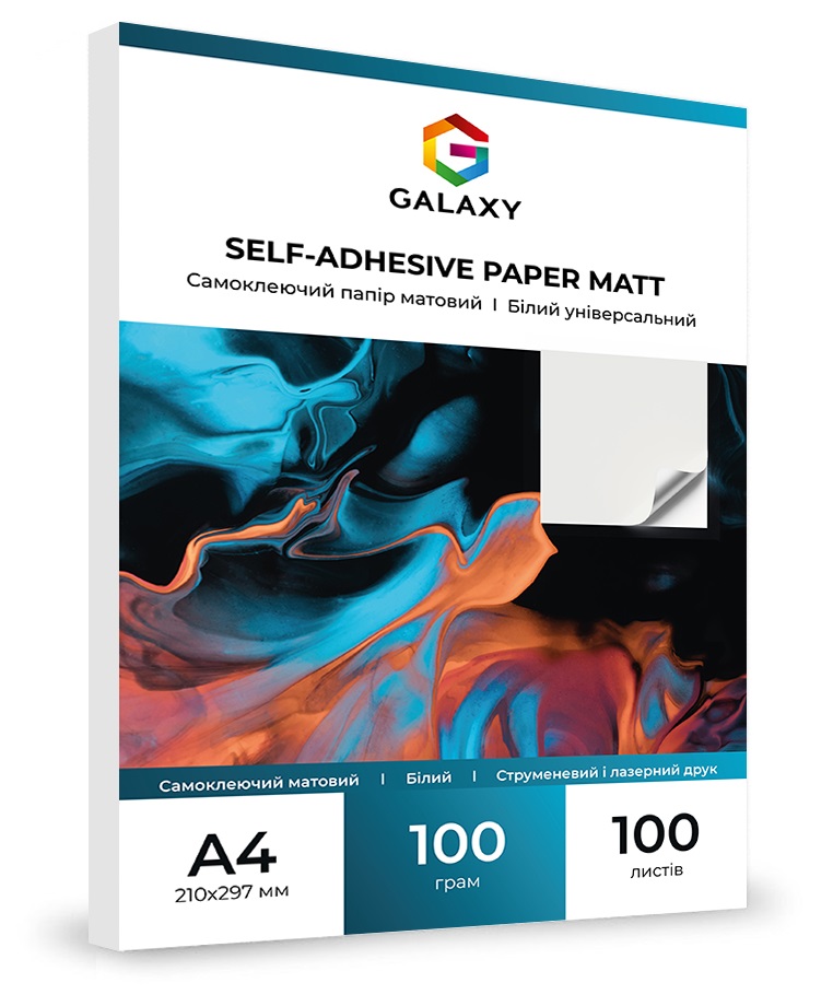Самоклеючий папір Galaxy А4 (100л) 100г/м2 матовий, універсальний